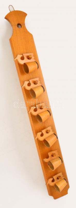 Beschreibung: Faragott fa kupicatartó (falra szerelhető) 6 db kupicával, 70×10 cm, m:9 cm (6×)