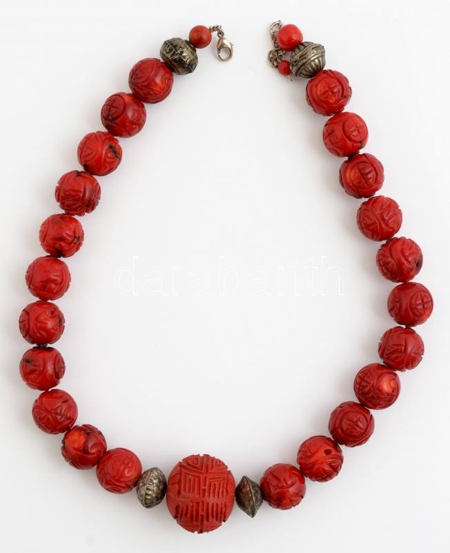 Faragott korall nyaklánc, ezüst szerelékkel, h: 44 cm https://www.darabanth.com/de/342-Fernauktion/342.0/Kunst-Dokumente-andere-Sammelgebiete/Flohmarkt~500012/Faragott-korall-nyaklanc-ezust-szerelekkel-h-44-cm~II1930139