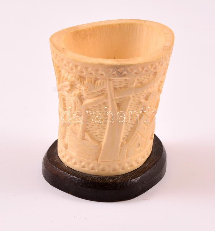 Faragott népi csont kis váza, fa talapzaton, m:6 cm https://www.darabanth.com/de/342-Fernauktion/342.0/Kunst-Dokumente-andere-Sammelgebiete/Flohmarkt~500012/Faragott-nepi-csont-kis-vaza-fa-talapzaton-m6-cm~II1926498