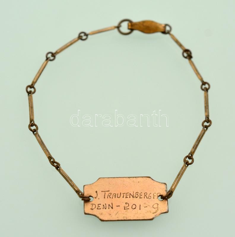 Kis fém karkötő, S. Trautenberger feliratú kis táblával, h: 18 cm https://www.darabanth.com/de/342-Fernauktion/342.0/Kunst-Dokumente-andere-Sammelgebiete/Flohmarkt~500012/Kis-fem-karkoto-S-Trautenberger-feliratu-kis-tablaval-h-18-cm~II1884272