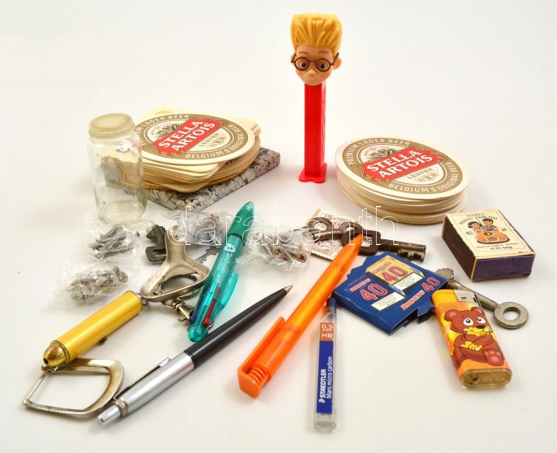 Beschreibung: Kis vegyes bolha tétel apróságokkal, söralátétekkel