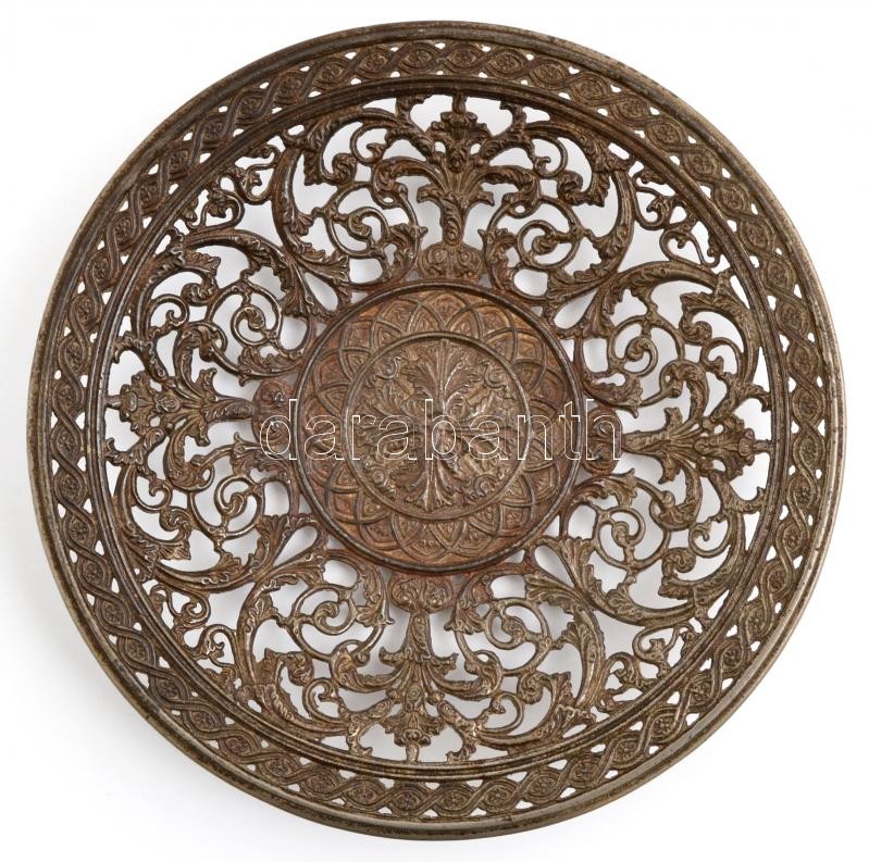 Beschreibung: Ornamentikus mintával díszített fém áttört tál, d: 22 cm