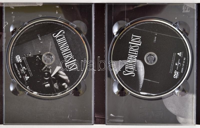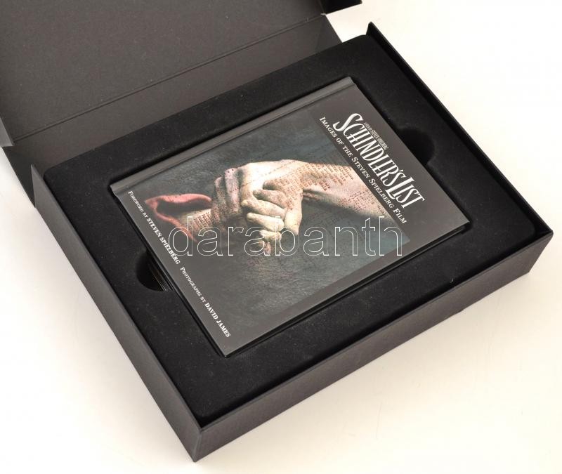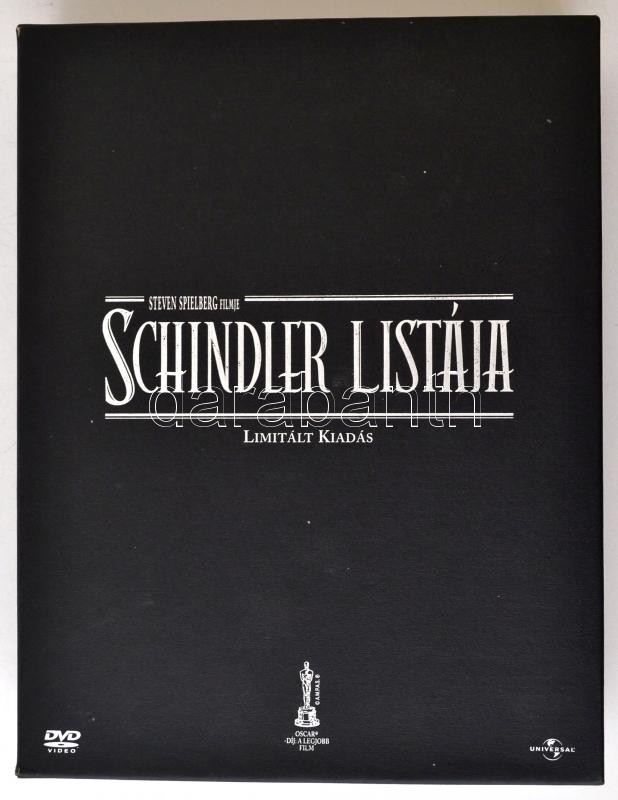 Schindler Listája DVD box set, limitált kiadás, 2 lemezes különleges DVD kiadás, extrákkal,extrákkal kiegészítve, Schindler's List - David James fotóművész képei, Stephen Spielberg előszavával, John Williams filmzenéje, valamint ritka, számozott filmkocka, amely a film egy kockájáról készült, hitelességi bizonyítván nélkül, eredeti kartondobozban.