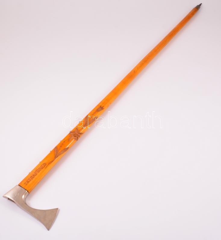 "Tátrafüred" feliratos fém fejes díszes fa fokos, h: 93,5 cm https://www.darabanth.com/de/342-Fernauktion/342.0/Kunst-Dokumente-andere-Sammelgebiete/Flohmarkt~500012/Tatrafured-feliratos-fem-fejes-diszes-fa-fokos-h-93-5-cm~II1929942