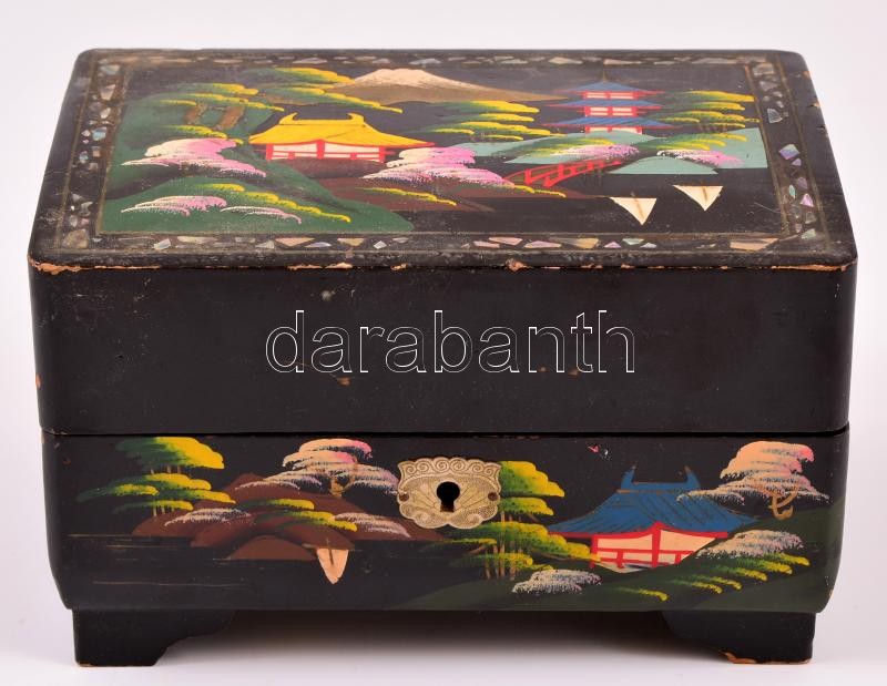 Távol-keleti fa zenélődoboz, benne forgó figurával, működik, 18×12×10 ... https://www.darabanth.com/de/342-Fernauktion/342.0/Kunst-Dokumente-andere-Sammelgebiete/Flohmarkt~500012/Tavol-keleti-fa-zenelodoboz-benne-forgo-figuraval-mukodik-18C39712C39710-cm~II1925502