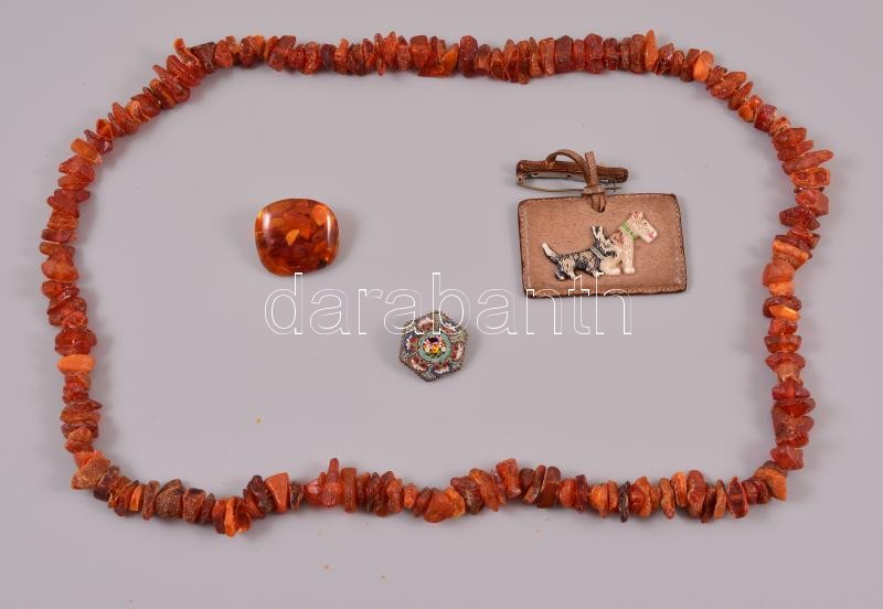 Beschreibung: Vegyes bizsu tétel, brossok, borostyán nyaklánc, 4 db