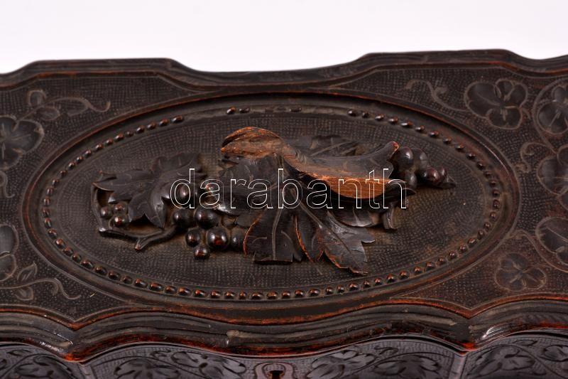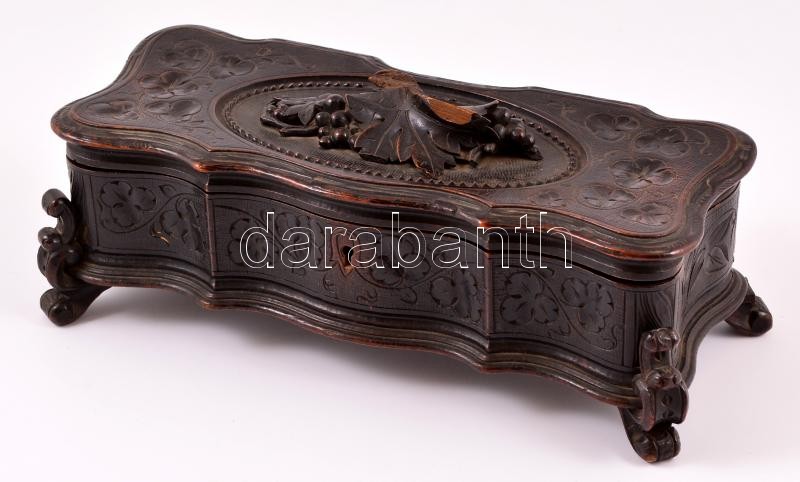 XIX. sz. faragott fa ládika plüss béléssel. Sérült 31x12x14 cm https://www.darabanth.com/de/342-Fernauktion/342.0/Kunst-Dokumente-andere-Sammelgebiete/Flohmarkt~500012/XIX-sz-faragott-fa-ladika-pluss-belessel-Serult-31x12x14-cm~II1925657