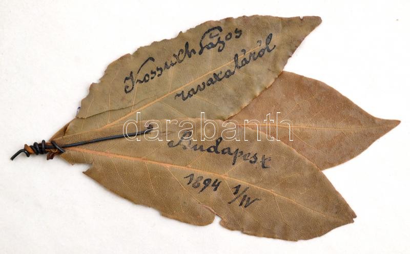 1894 Babérlevél "Kossuth ravataláról" felirattal https://www.darabanth.com/de/342-Fernauktion/342.0/Kunst-Dokumente-andere-Sammelgebiete/Historische-Dokumenten-Handschriften~500019/1894-Baberlevel-Kossuth-ravatalarol-felirattal~II1929998