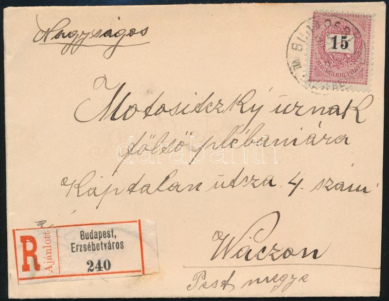 Beschreibung: 1895 Vác, Motesiczky János (?-1916) plébános, későbbi pápai prelátus, olvasó kanonok részére szóló levél, borítékkal.