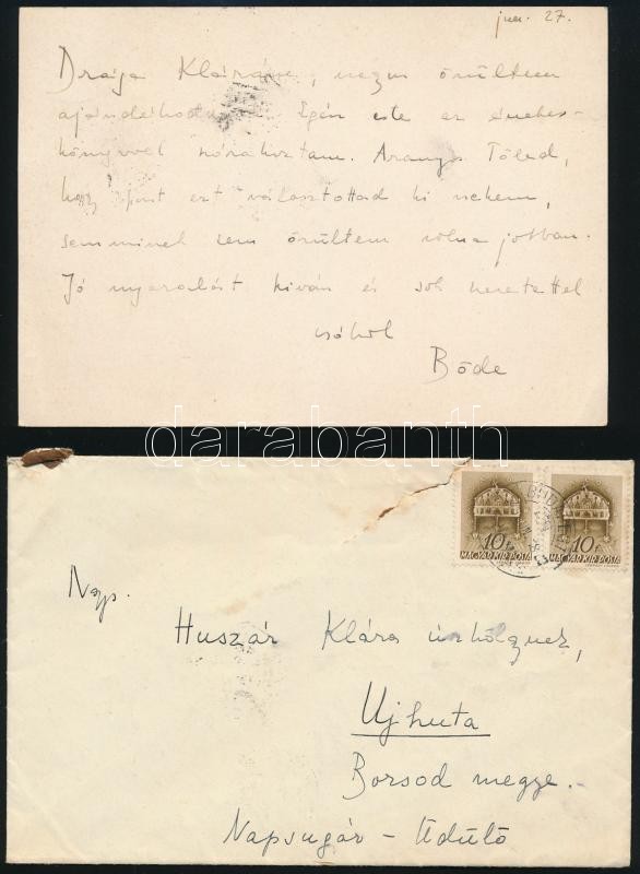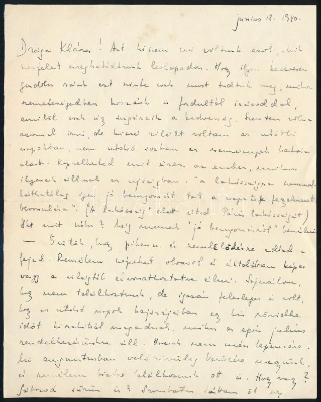 1939-1940 Kozma Erzsébet, Kozma Lajos (1884-1948) építész lányának levele és lapja Huszár Klára részére