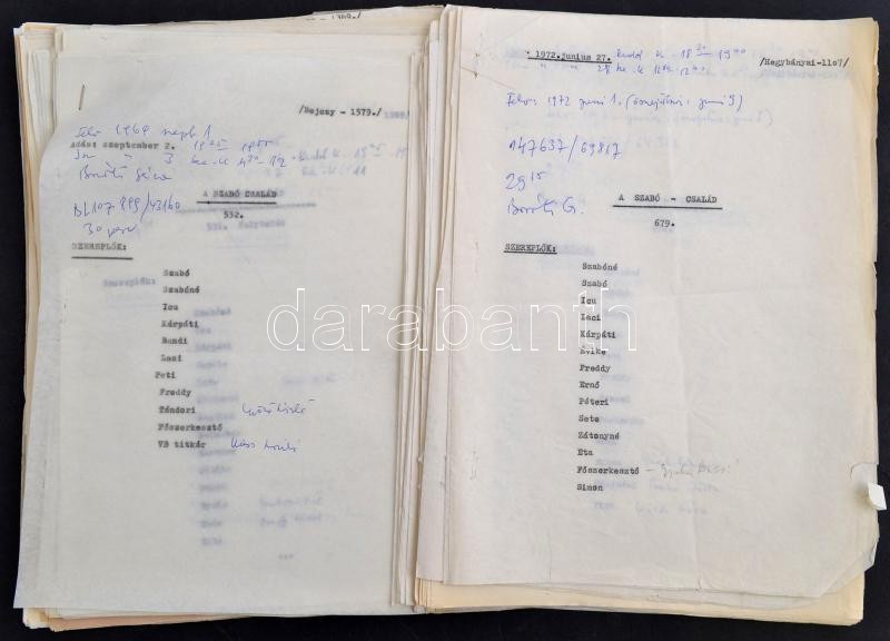 1972-1979 A Szabó-család gépelt szövegkönyvei, Liska Dénes (1927-2012)... https://www.darabanth.com/de/342-Fernauktion/342.0/Kunst-Dokumente-andere-Sammelgebiete/Historische-Dokumenten-Handschriften~500019/1972-1979-A-Szabo-csalad-gepelt-szovegkonyvei-Liska-Denes-1927-2012-dramaturg-iro-sajat~II1931903