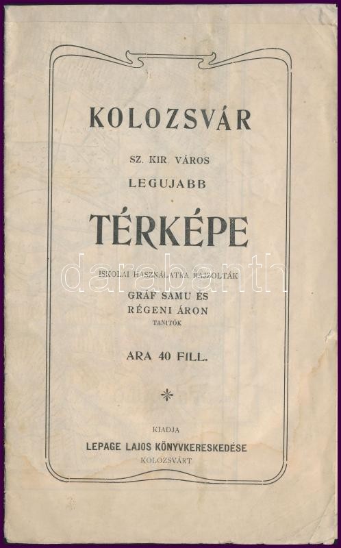 1906 Kolozsvár sz. kir. város térképe. Rajzolták: Gráf Samu és Régeni Áron. Kolozsvár, Lepage Lajos, litográfia, hajtásnyommal, a hátoldalon javított,34x42 cm