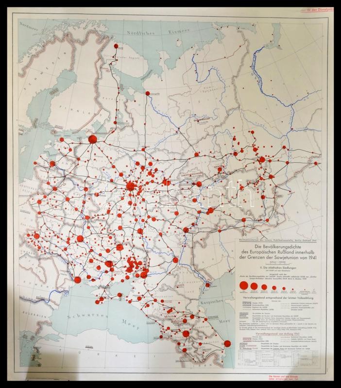 1941 Die Bevölkerungsdichte der europäischen Russland innerhalb der Grenzen Sowjetunion von 1941 Stuttgart, 1941. Karten Abteilung des Deutschen Ausland Instituts und der Publikationsstelle Berlin-Dahlem./ Map of the Russian occuppied territories. 73x90 cm