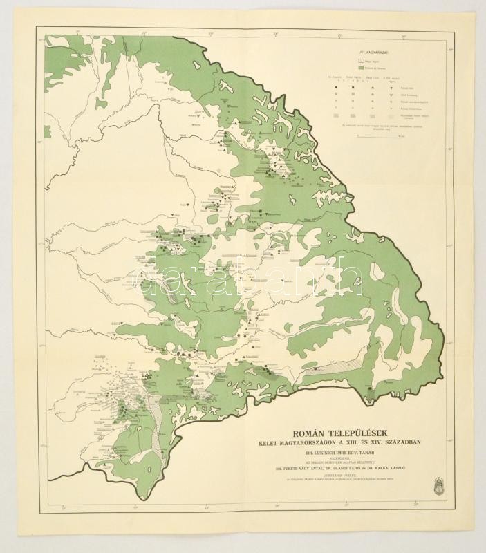 1941 Román települések Kelet-Magyarországon a XIII. és XIV. században, lépték nélkül, az Erdély és népei (Szerk.: Mályusz Elemér. Bp., 1941) kötetből, 53×45,5 cm
