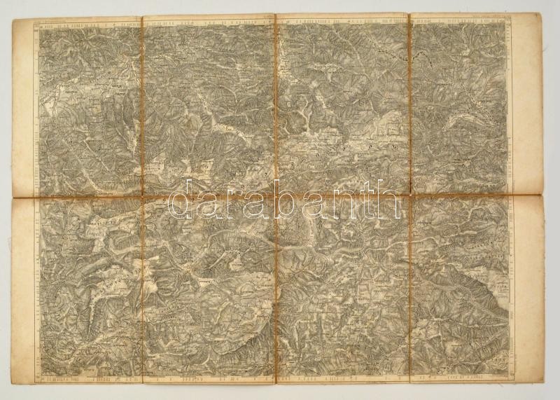 cca 1880 Eisenerz, Wildalpe und Aflenz katonai térképe, 1:75.000, vászonra kasírozva, 39x57 cm./ cca 1880 Military map of Wien and surroundings, 1:75.000, on canvas, 39x57 cm