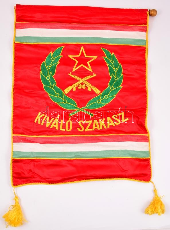 cca 1970 Kiváló szakasz. Selyemzászló fa rúddal. 38x50 cm https://www.darabanth.com/de/342-Fernauktion/342.0/Kunst-Dokumente-andere-Sammelgebiete/Militaria~500028/cca-1970-Kivalo-szakasz-Selyemzaszlo-fa-ruddal-38x50-cm~II1927236