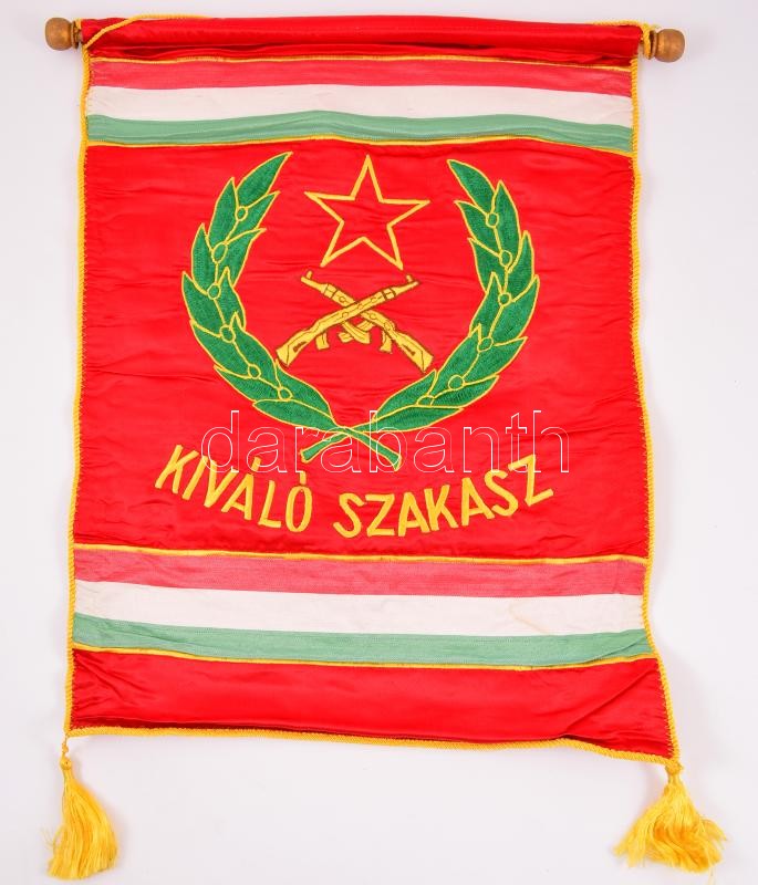 cca 1970 Kiváló szakasz. Selyemzászló fa rúddal. 38x50 cm https://www.darabanth.com/de/342-Fernauktion/342.0/Kunst-Dokumente-andere-Sammelgebiete/Militaria~500028/cca-1970-Kivalo-szakasz-Selyemzaszlo-fa-ruddal-38x50-cm~II1927240