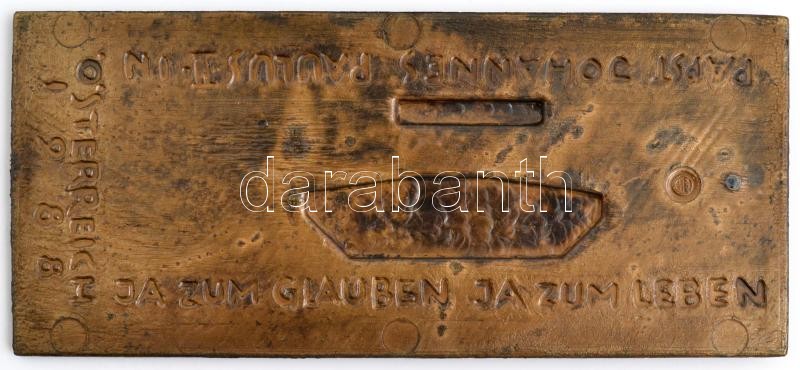 Beschreibung: 1988 Ausztria, II. János Pál pápa emlékplakett, jelzett, réz, 16x7 cm