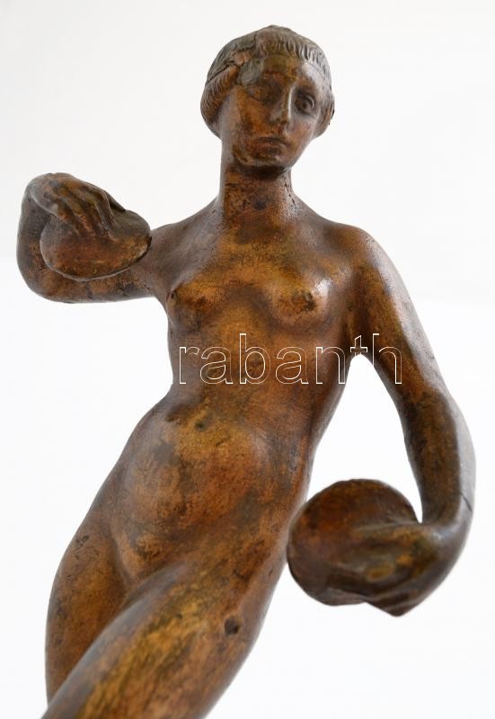Beschreibung: Jelzés nélkül: Cintányéros akt. Rezezett spiáter, sérült, talapzat nélkül, m:25,5 cm
