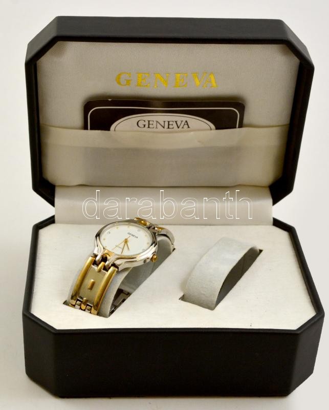 Beschreibung: Geneva fém szíjas karóra, díszdobozban, nem működik