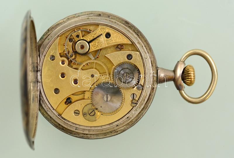 Beschreibung: Niellós, dupla ezüst hátsó fedelű zsebóra, jól működő állapotban d: 5 cm
