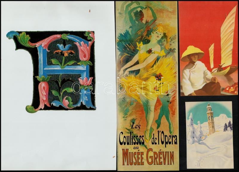 Beschreibung: 6 db különböző színes reklámnyomat különböző korszakokból, közte modernek is