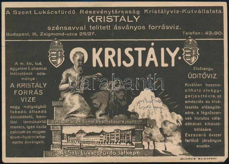 Szent Lukácsfürdő kristályvíz számolócédula https://www.darabanth.com/de/342-Fernauktion/342.0/Kunst-Dokumente-andere-Sammelgebiete/Werbungen~500022/Szent-Lukacsfurdo-kristalyviz-szamolocedula~II1928879