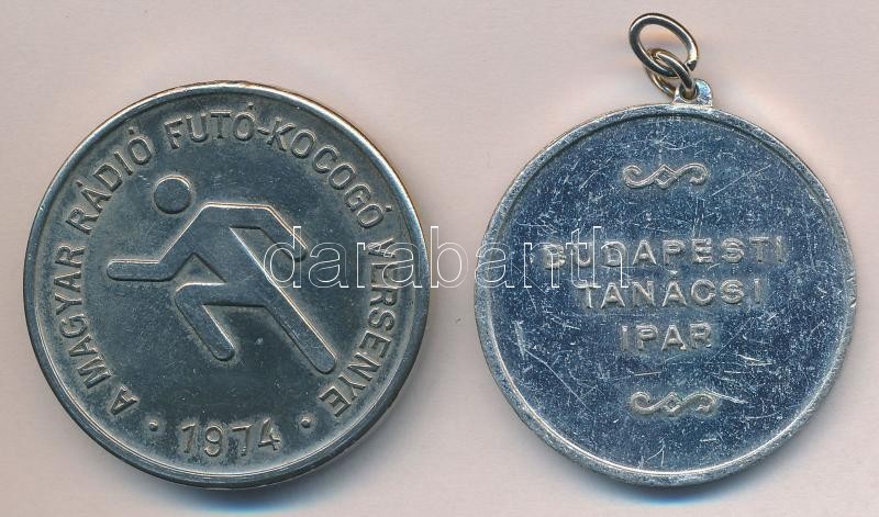 1974. "A Magyar Rádió Futó-Kocogó Verseny" fém emlékérem (40mm) + DN "Budapesti Tanácsi Ipar" (37mm) T:2,2-