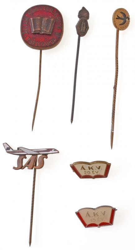 Beschreibung: 6db-os vegyes magyar jelvény és kitűző tétel, közte "SAS", "Állami Könyvterjesztő Törzsgárda" T:2