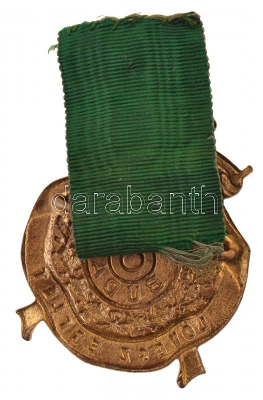 ~1920-1930. "Buda Lövész Egylet" zománcozott, aranyozott jelvény szalaggal (55x42mm) T:2 kopott zománc