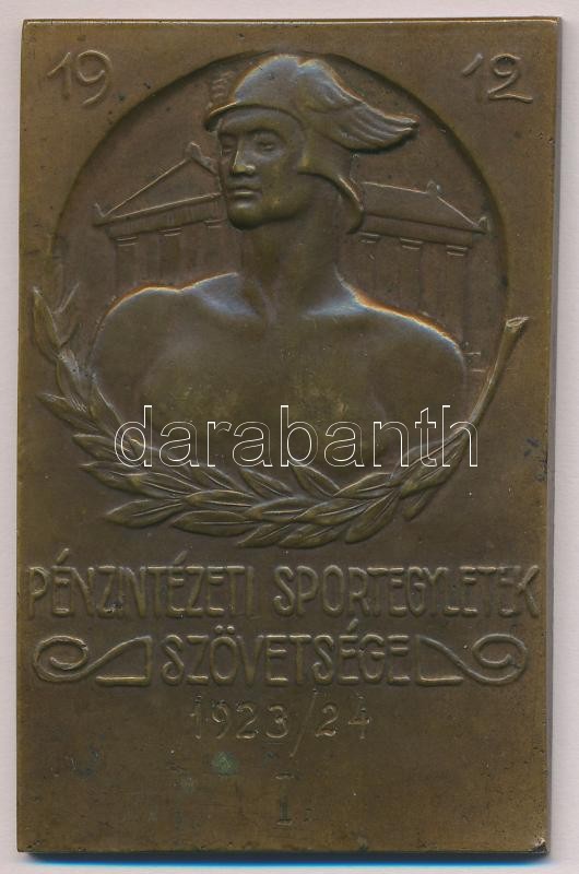 ~1924. "Pénzintézeti Sportegyletek Szövetsége - 1923/24. I." Br díjplakett (48x75mm) T:2