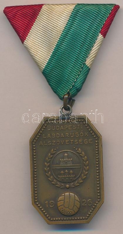 ~1926. "Budapesti Labdarúgók Alszövetsége 1926" Br sportérem... https://www.darabanth.com/de/342-Fernauktion/342.0/Numismatik/Faleristik-Auszeichnungen-Medaillen-Orden~1500017/7E1926-Budapesti-Labdarugok-Alszovetsege-1926-Br-sporterem-szalagon-45x31mm-T2~II1911586