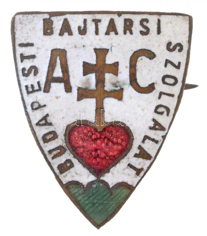 Beschreibung: ~1930. "Budapesti Bajtársi Szolgálat" zománcozott jelvény (18x22mm) T:2 kis zománchiba