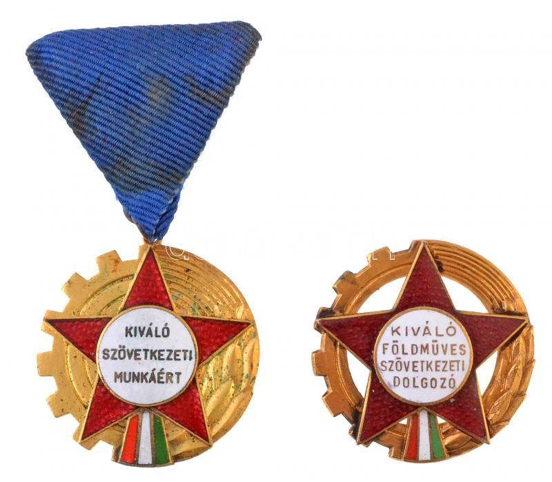 Beschreibung: ~1960-1970. "Kiváló Földműves Szövetkezeti Dolgozó" zománcozott kitüntető jelvény + "Kiváló Szövetkezeti Munkáért" zománcozott kitüntető jelvény szalagon T:2,2- oxidáció