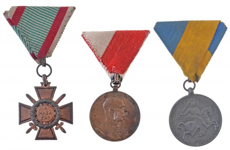 1898. "Jubileumi Emlékérem Fegyveres Erő Számára" Br kitüntetés a polgári alkalmazottak mellszalagjával T:2 szalag javított + 1941. "Délvidéki Emlékérem" cink emlékérem mellszalaggal. Szign.: BERÁN L. + 1942. "Tűzkereszt II. fokozata" oxidált hadifém kitüntetés modern mellszalaggal T:2