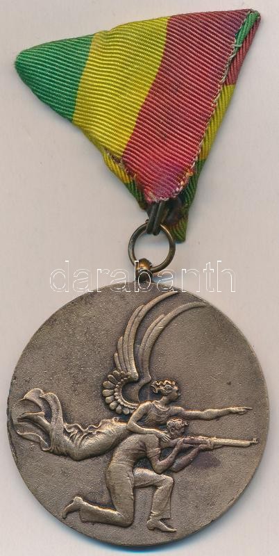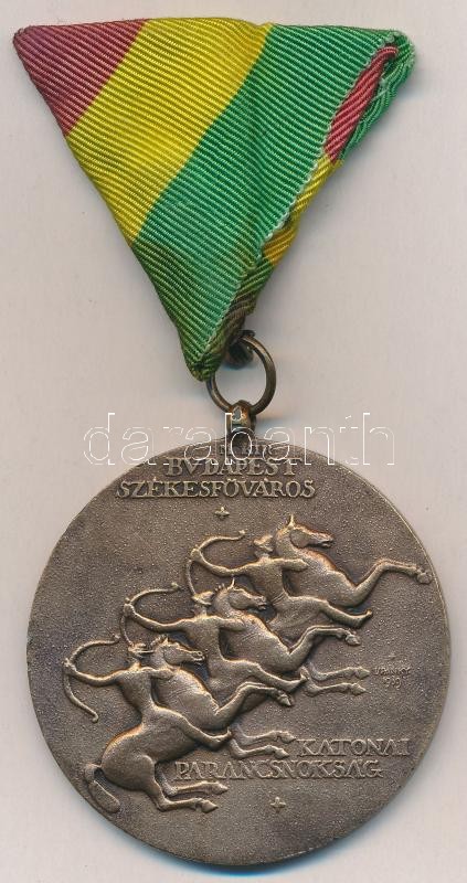 Beschreibung: Ispánki József (1906-1992) 1939. "Magyar Királyi Budapest Székesfőváros Katonai Parancsnokság" bronzozott fém emlékérem szalagon (51mm) T:2- ph.