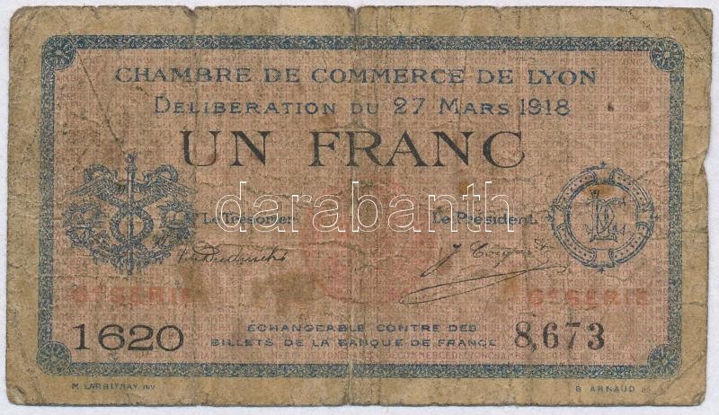 Franciaország / Lyon 1918. 1Fr "Chambre de Commerce de Lyon" papír szükségpénz T:III-