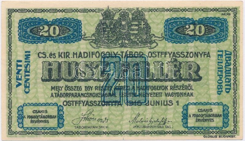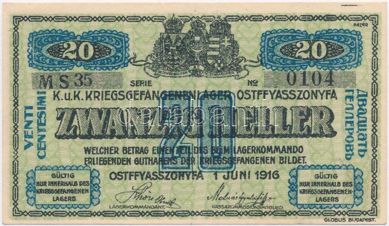 Hungary / Ostffyasszonyfa / POW Camp June 1st 1916. 20 Fillér arabic series and serial numerals, "MS" C:UNC,AU