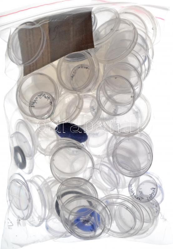Beschreibung: Kis zacskónyi használt éremtartó kapszula tétel, több különböző átmérővel