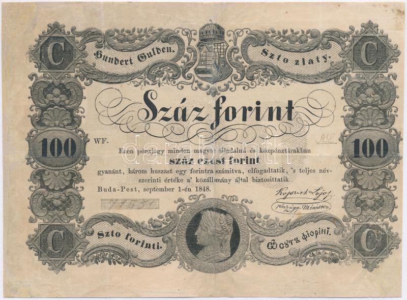 Adamo G114 https://www.darabanth.com/de/342-Fernauktion/342.0/Numismatik/Ungarische-Banknoten~1500007/1848-100Ft-TIII-IV-restauralt-vagott-Adamo-G114~II1925003