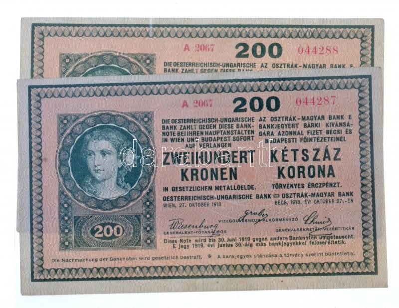 1918. 200K "A 2067" hullámos hátlappal (2x) sorszámkövetők T... https://www.darabanth.com/de/342-Fernauktion/342.0/Numismatik/Ungarische-Banknoten~1500007/1918-200K-A-2067-hullamos-hatlappal-2x-sorszamkovetok-TIII-szep-papir~II1927844