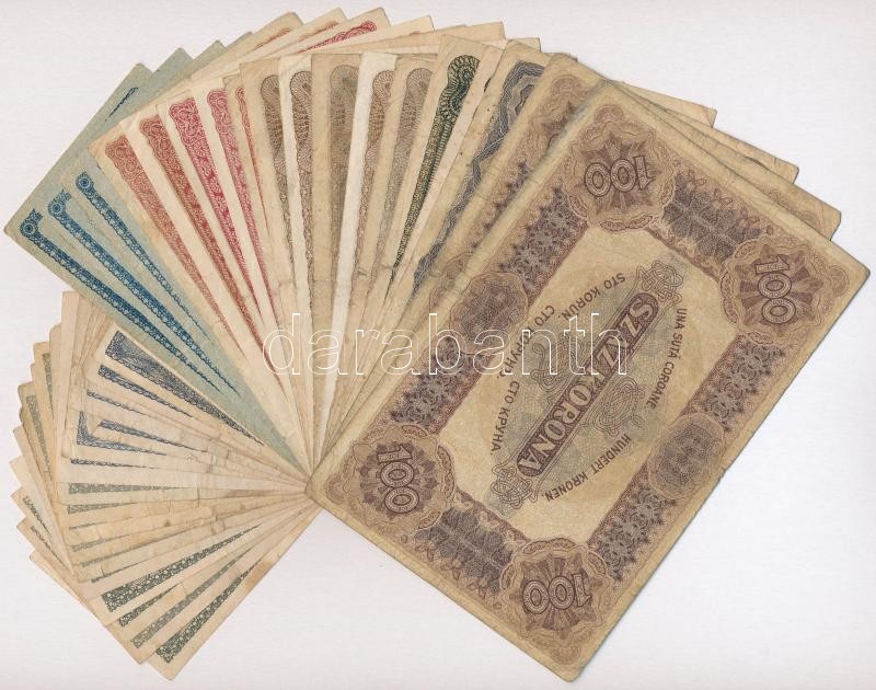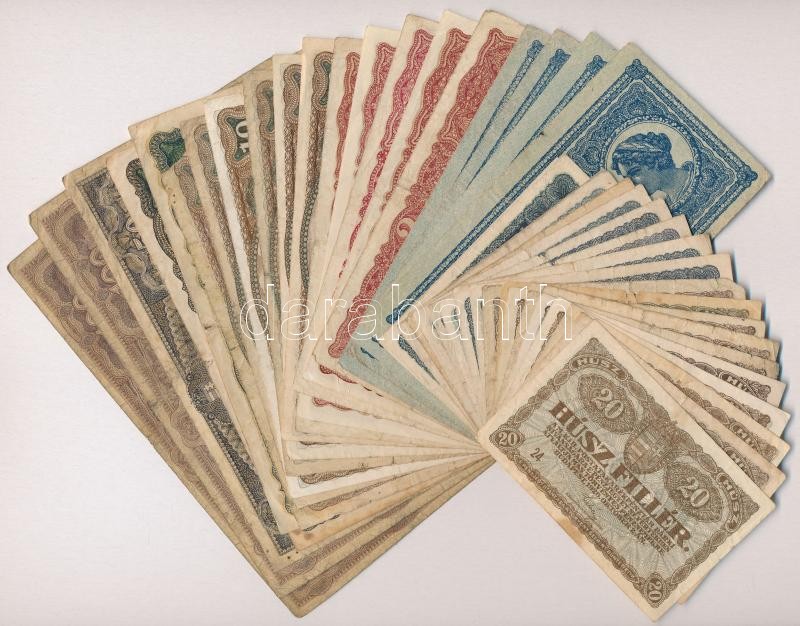1920. 20f-100K (42x) T:III,III- https://www.darabanth.com/de/342-Fernauktion/342.0/Numismatik/Ungarische-Banknoten~1500007/1920-20f-100K-42x-TIII-III-~II1930008