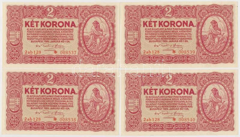 1920. 2K "2aa" (4x) sorszámkövetők + 2K "2ab" csil... https://www.darabanth.com/de/342-Fernauktion/342.0/Numismatik/Ungarische-Banknoten~1500007/1920-2K-2aa-4x-sorszamkovetok-plus-2K-2ab-csillagos-sorszam-4x-sorszamkovetok-TI-I-~II1927268