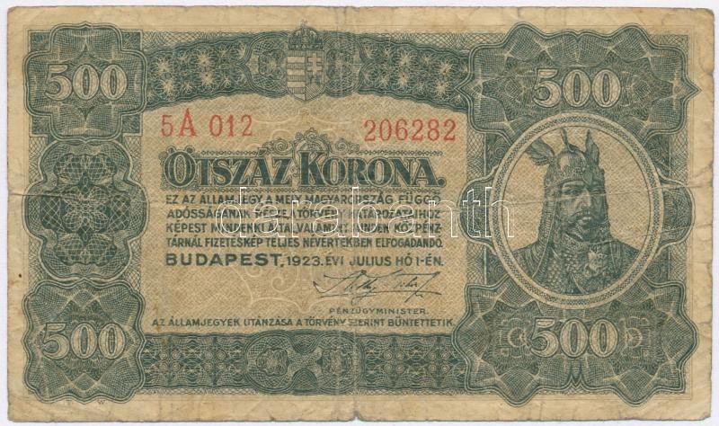 1923. 500K nyomdahely jelölés nélkül T:III,III-