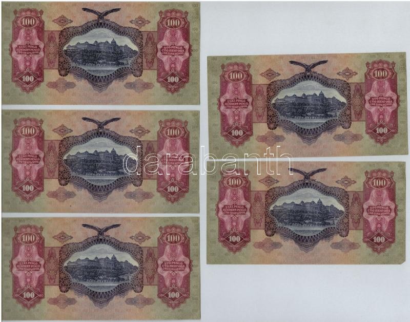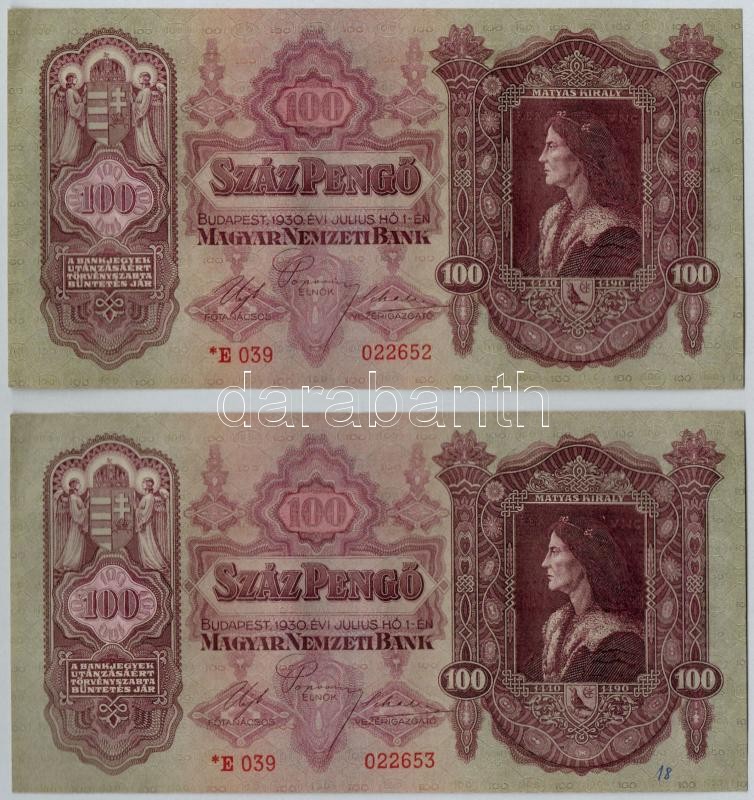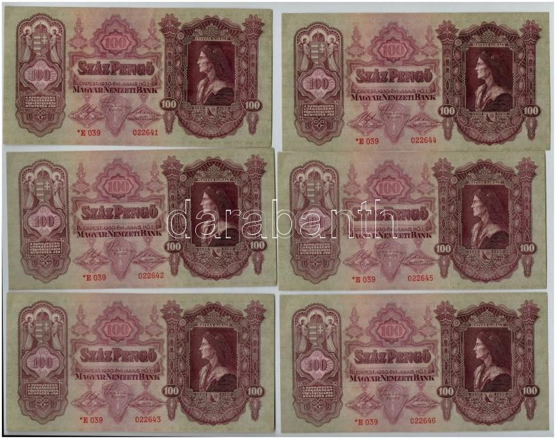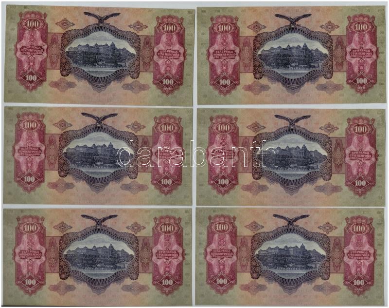 1930. 100P (13x) sorszámkövetők, csillagos sorszám T:I,I- https://www.darabanth.com/de/342-Fernauktion/342.0/Numismatik/Ungarische-Banknoten~1500007/1930-100P-13x-sorszamkovetok-csillagos-sorszam-TI-I-~II1925011