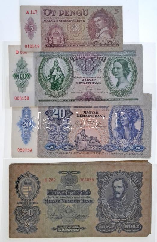 1930-1946. ~124db-os válogatott, szép tartású pengő bankjegy tétel, közte sorszámkövető párok és sorok, valamint több jó állapotú 1930. 20P is T:I--III