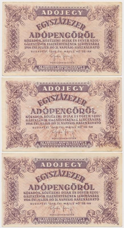 1946. 100.000AP (6x) sorszám nélküli változat T:III https://www.darabanth.com/de/342-Fernauktion/342.0/Numismatik/Ungarische-Banknoten~1500007/1946-100000AP-6x-sorszam-nelkuli-valtozat-TIII~II1914475