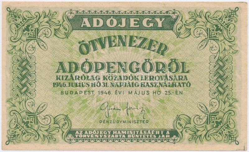 Beschreibung: 1946. 50.000AP sorozat- és sorszám nélkül, hátoldali szövegben több ékezethiány T:I-