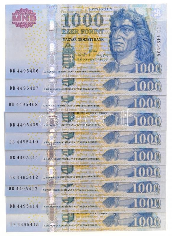 2009. 1000Ft "DB" (10x) sorszámkövetők T:I https://www.darabanth.com/de/342-Fernauktion/342.0/Numismatik/Ungarische-Banknoten~1500007/2009-1000Ft-DB-10x-sorszamkovetok-TI~II1926977