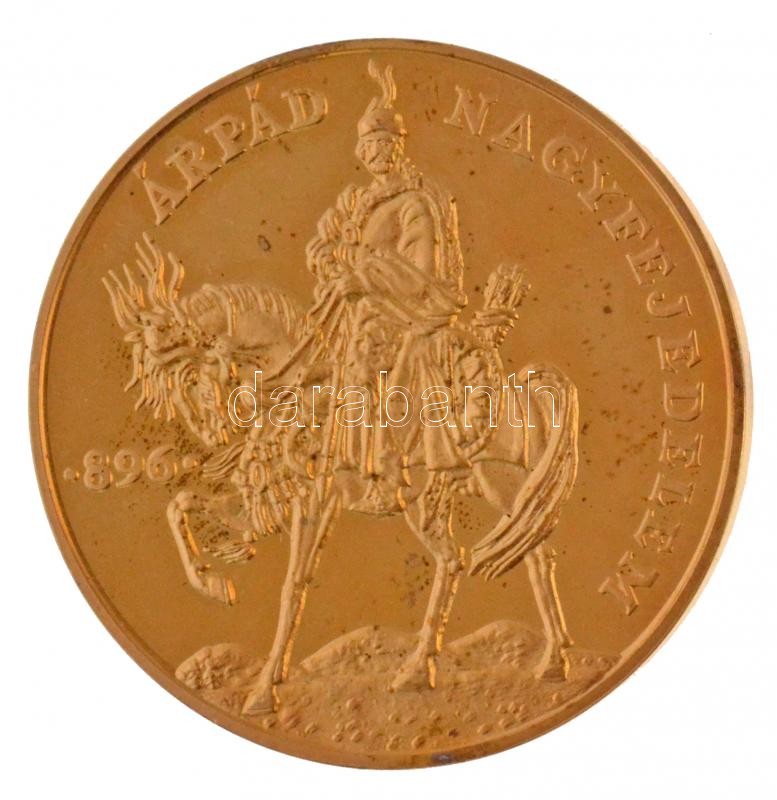 Beschreibung: Lebó Ferenc (1960-) 1996. "A Honfoglalás emlékére 896-1896 / Árpád Nagyfejedelem 896" aranyozott Br emlékérem (42,5mm) T:1-(PP)
